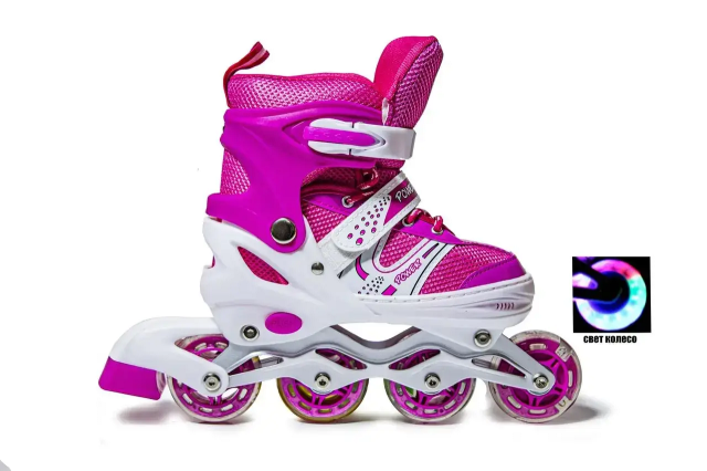 Набор раздвижных роликов включает в себя ролики с регулируемым размером S (31-34), а также шлем и защиту. Эти роликовые коньки, предоставленные производителем Sports, предназначены для активного фитнес-катания. Они оснащены кнопочной системой регулировки, раздвижным механизмом Push&Pull, мягким ботинком из сетчатого материала и дышащей вентиляцией для комфортного ношения. Комплект включает в себя защитные элементы, такие как шлем, бакля и пяточный ремень.