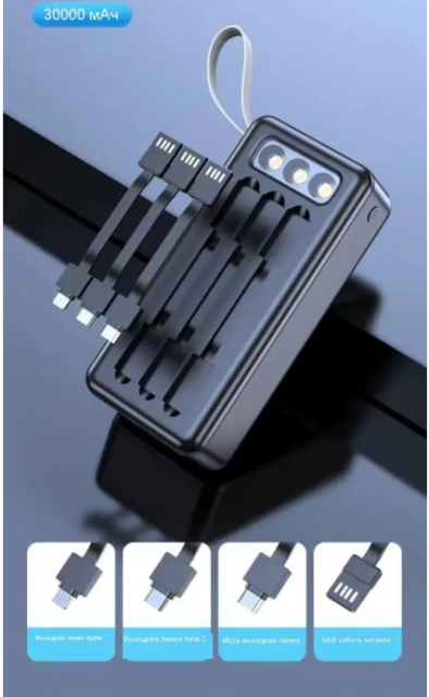 Повербанк Power Bank с емкостью 30000 mAh с фонариком