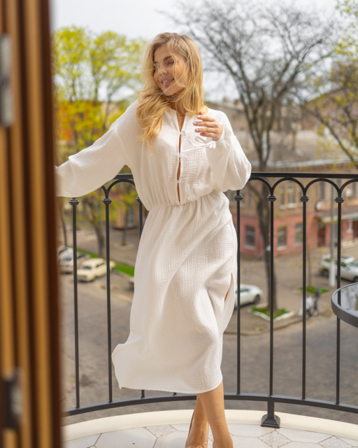 Воздушное платье-миди из ткани муслин, которое такое легкое и неощутимое на теле. Прекрасно пропускает воздух и очень приятная на ощупь.
