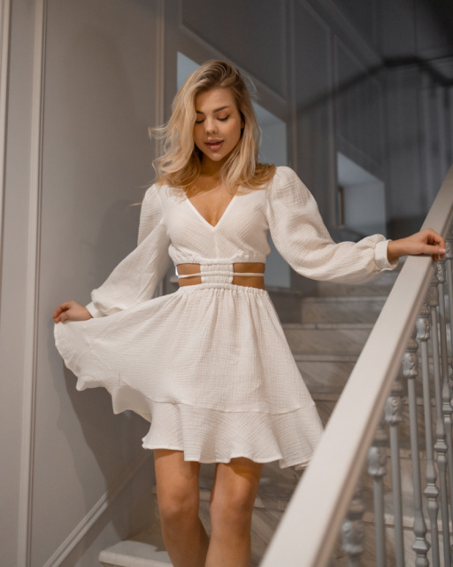 Волшебное платье-мини из ткани муслин, которое такое легкое и неощутимое на теле. Прекрасно пропускает воздух и очень приятна на ощупь.