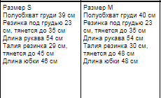 Размер S: грудь 80 см, талия 58-90 см, бедра свободные