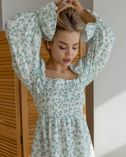Воздушное и легкое платье миди с разрезом на ножке из натурального хлопка.