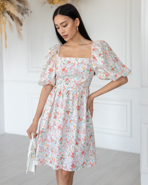 Платье выполнено из натурального хлопкового материала в цветочный принт.