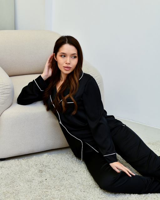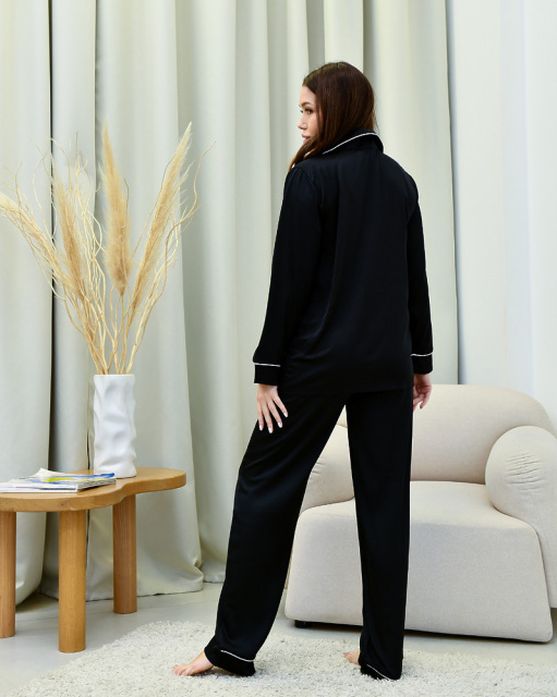 Комплект: Брюки + Рубашка на пуговицах.Классические брюки свободного кроя с резинкой на талии и карманами. Рубашка с карманами на пуговицах.
