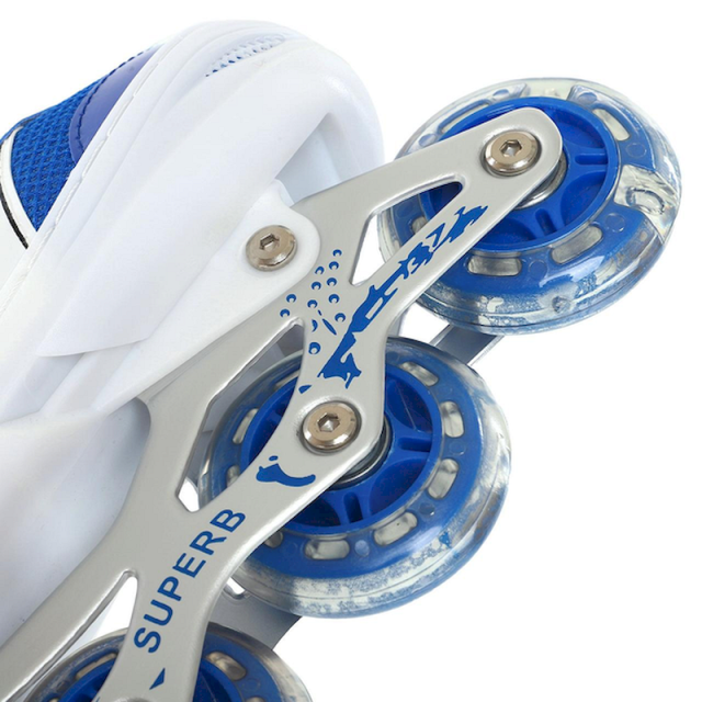 Представляют собой удобную опцию для фитнес-катания. Они обладают кнопочной системой регулировки на 4 размера с раздвижным механизмом Push&Pull, что обеспечивает простое и удобное настройка размера. Ботинок выполнен из мягкого сетчатого материала, обеспечивая комфорт и дышащесть во время катания. Светящиеся колеса, система подшипников ABEC 7, классическая система шнуровки, бакля и пяточный ремень делают эти коньки универсальными и функциональными.
