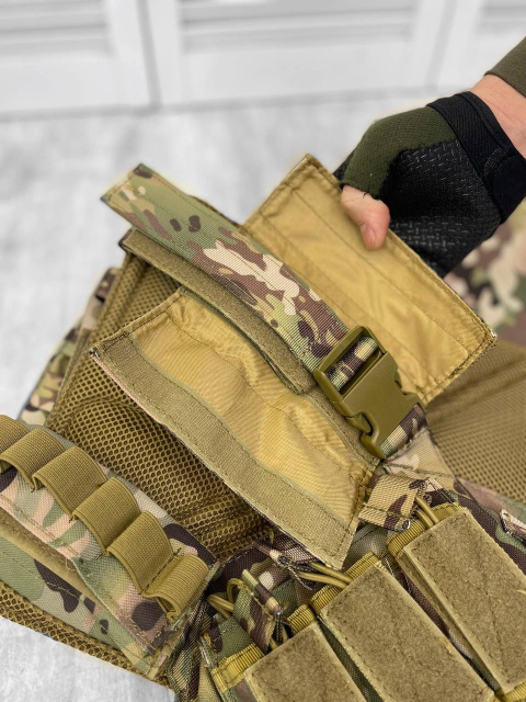 Плитоноска тактическая быстросъемная Yakeda Original "Multicam" с подсумками MOLLE