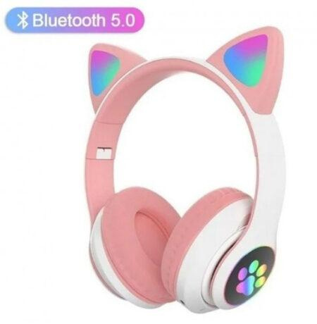 Беспроводные Bluetooth наушники с кошачьими ушками и цветной подсветкой Cat VZV-23M (Розовые)