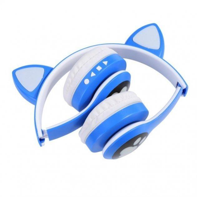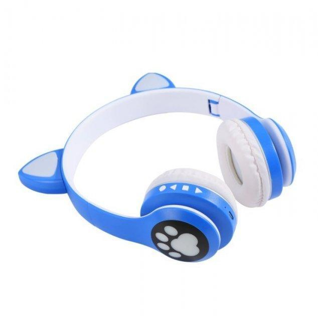 Беспроводные детские Bluetooth наушники с кошачьими ушками и цветной подсветкой Cat VZV-23M (синие)