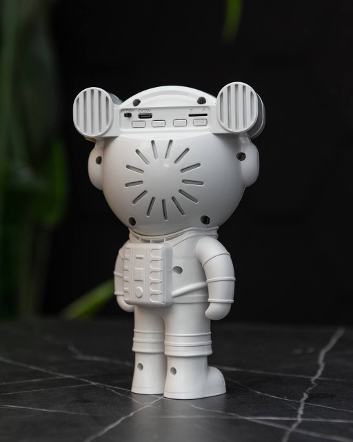 Одним из ключевых преимуществ этого проектора является его подвижность. Вы можете менять положение рук астронавта и настраивать угол наклона головы. Это позволяет контролировать направление и угол проекции, ведь проекторная лампа расположена в шлеме космонавта. 5, 1 или 2 часа. Вам больше не нужно вставать с кровати, чтобы выключить его, или рисковать зайти в детскую комнату и разбудить малыша. Просто нажмите кнопку на пульте и выберите нужный таймер. как портативная колонка с подключением через Bluetooth