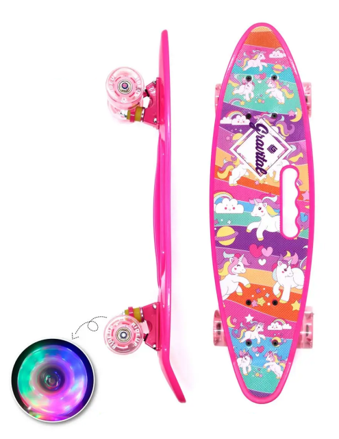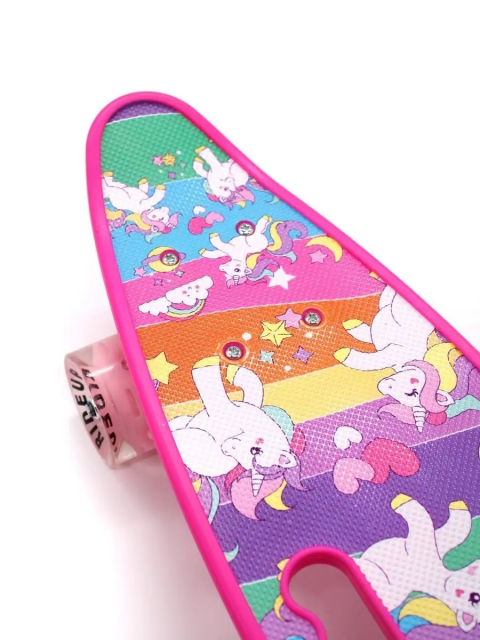Пенни Борд Penny Cruiser с ручкой предназначен для детей с массой до 60 кг и предлагает универсальное применение как в городских условиях, так и для освоения простых трюков. Он оснащен прочной и легкой пластиковой доской с ярким принтом, обладает специальным рельефным рисунком для предотвращения скольжения ног и удобным вырезом для переноски. Характеристики: Размеры скейта: 58.5х16х10 см Яркий принт Прочная и легкая пластиковая дека Вырез в деке для удобства переноски Рельефный рисунок на деке Материал подвески: прочный алюминий Регулирование жёсткости подвески Диаметр колёс: 58 мм Светящиеся колёса из полиуретана Класс подшипников: ABEC-7 Максимальная нагрузка: 60 кг