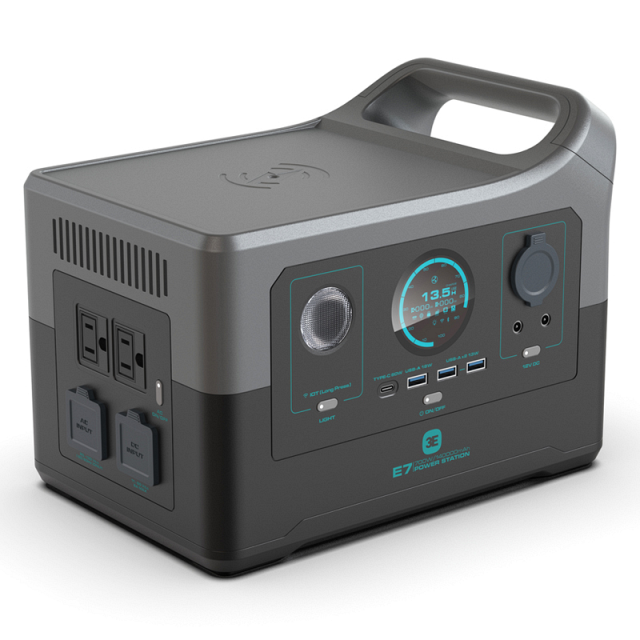 Портативная зарядная станция E7 - компактное универсальное и высокопроизводительное устройство с Li-Ion NCM 18650 аккумулятором номинальной емкостью 504 Втч / 28.8 В для обеспечения резервного или аварийного питания смартфонов, ноутбуков, планшетов и маломощной бытовой техники. Электростанция поддерживает LED освещение, беспроводную зарядку, быструю зарядку в течение 1 часа через розетку 220-240 В, также можно зарядить устройство через автомобильный прикуриватель и солнечную панель с максимальной мощностью 450 Вт.