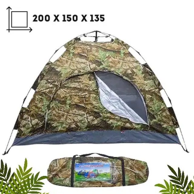 Палатка туристическая 3-х местная, Автоматическая 200 х 150 х 135 расцветка камуфляж