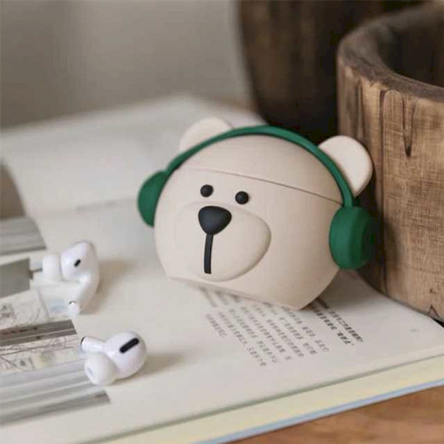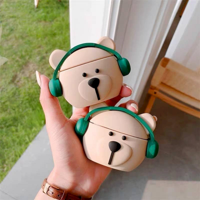 Силиконовый 3D чехол для наушников Apple AirPods Pro 1/2 Медведь в наушниках