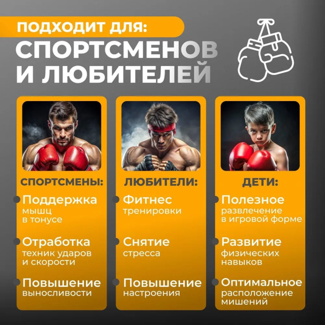 Боксерская мишень выполнена из высококачественных материалов. Прорезиненные зоны для ударов мягкие на ощупь и приятны для кожи, а внутренний слой из пенопласта обеспечивает надежную защиту рук ребенка. Эти материалы не только делают устройство долговечным и прочным, но и облегчают уход за поверхностью, которая легко очищается.