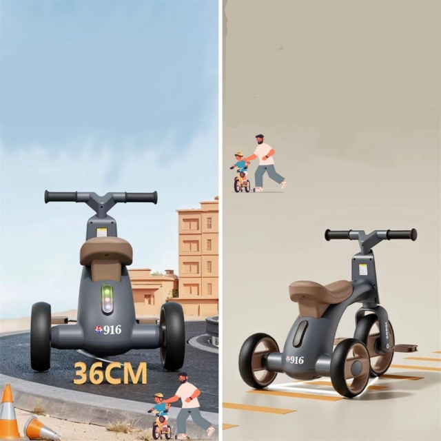 3-х колесный велосипед: 1 колесо спереди и 2 сзади для безопасности и сохранения равновесия.